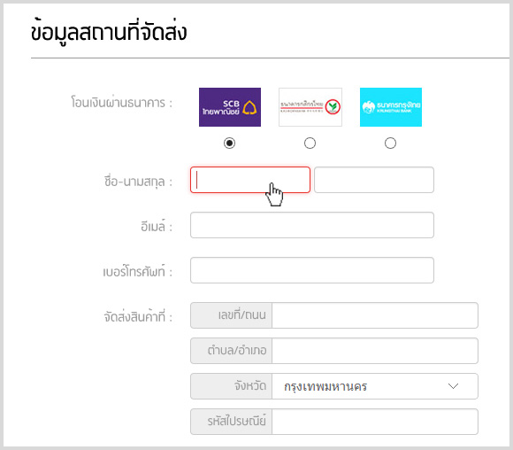 - กรอกข้อมูล ที่อยู่จัดส่ง
