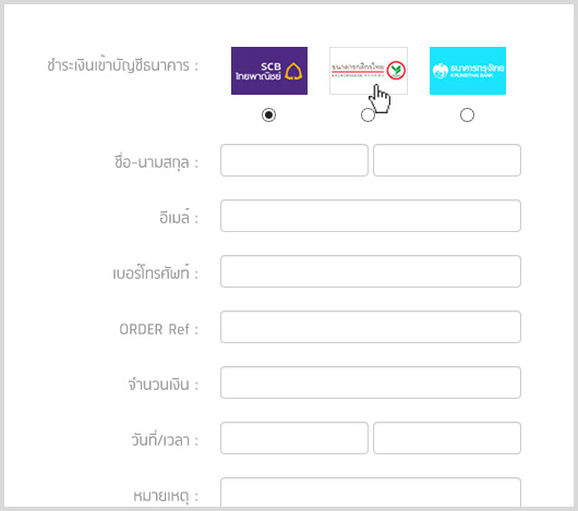 7.ในกรณีที่ท่านเลือกชำระเงินด้วยการโอนเงินผ่านธนาคาร - เมื่อทำการชำระเงินแล้ว ท่านต้องแจ้งการชำระเงินกับทางเรา