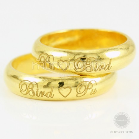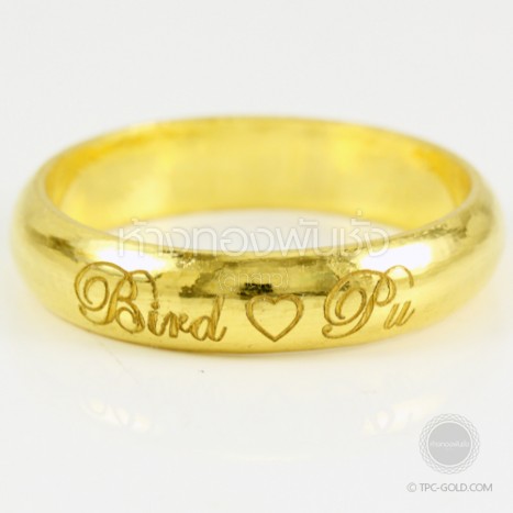 OR166 ตัวอย่างงานสั่ง: สลักอักษรบนแหวนเกลี้ยง ทอง 96.5% หนักวงละ 2 สลึง ติดต่อสอบถาม -