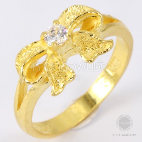 แหวนโบว์ติดเพชรสังเคราะห์ ทอง 96.5% หนัก 1 สลึง