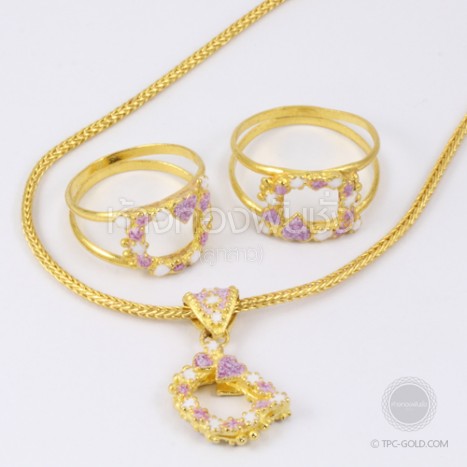 SET032 ชุดสร้อยคอและสร้อยข้อมือดอกไม้ ทองคำ 96.5% ติดต่อสอบถาม -