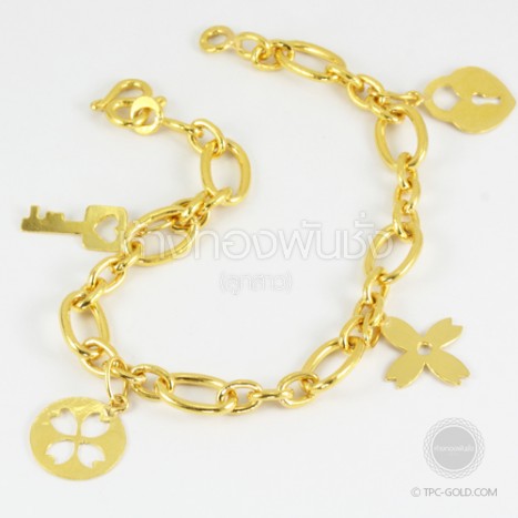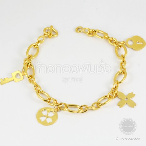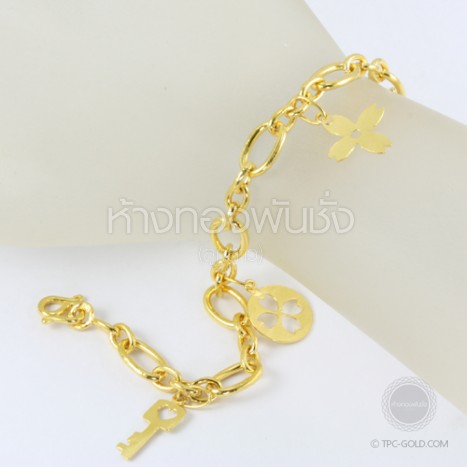 GD794 สร้อยข้อมือห้อยลูกกระพรวน(ทูโทน) ทอง 96.5% หนัก 2 สลึง ฿ 38,900 -