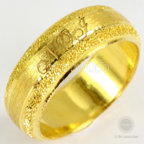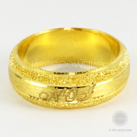 OR091 ตัวอย่างงานสั่ง : งานสลักอักษรบนแหวน ลายมนขอบพ่นทราย หนัก 1 สลึง ทองคำ 96.5% ติดต่อสอบถาม -