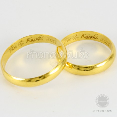 OR242 ตัวอย่างงานสั่ง: สลักอักษรบนแหวนเกลี้ยงโปร่ง ทอง 96.5% หนักครึ่งสลึง ติดต่อสอบถาม