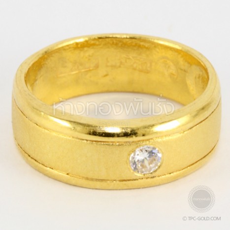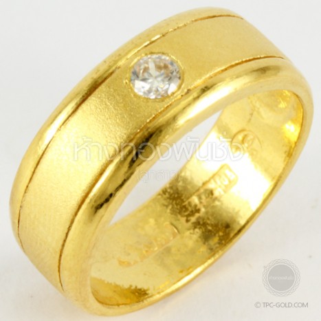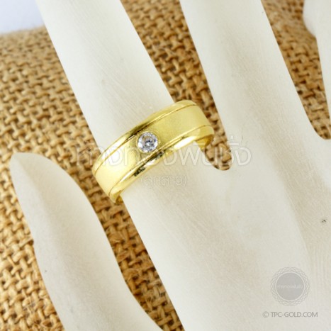 แหวนทรายขอบเงา เพชรสังเคราะห์ ทอง96.5% หนัก 2 สลึง