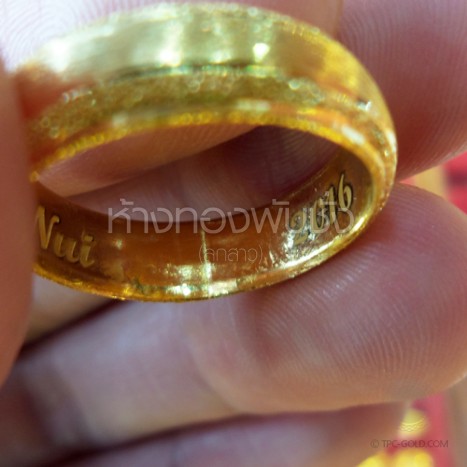 OR151 ตัวอย่างงานสั่ง: สลักอักษรบนแหวนล้อแม็ก ทอง 96.5% หนัก 1 สลึง ติดต่อสอบถาม -