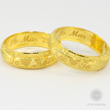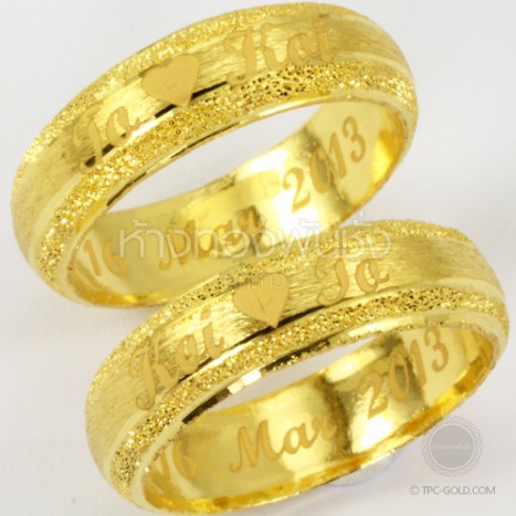 OR104 ตัวอย่างงานสั่ง: สลักอักษรบน แหวนทรายขอบเงา ทอง 96.5% หนักวงละ 1 สลึง ติดต่อสอบถาม