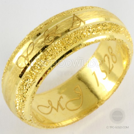 OR183 ตัวอย่างงานสั่ง: สลักอักษรบนแหวน ทรายขอบเงา ทอง 96.5% หนัก 1 และ 2 สลึง ติดต่อสอบถาม -