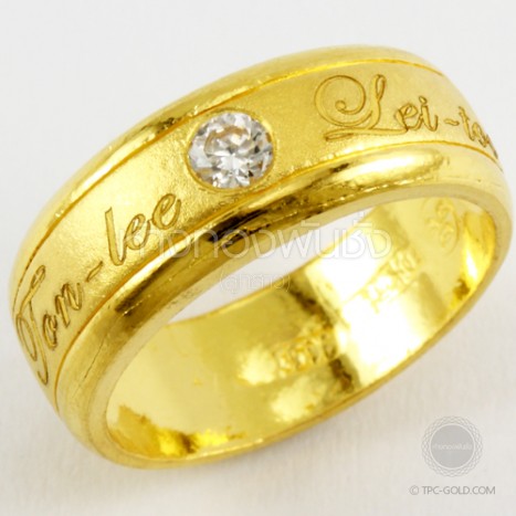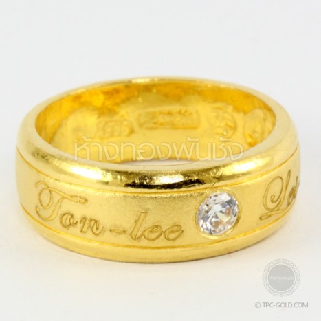 OR221 ตัวอย่างงานสั่ง: สลักอักษรบนแหวนเกลี้ยงตัน ทอง 96.5% หนัก วงละ 2 สลึง ติดต่อสอบถาม -