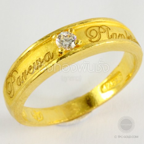 OR279 ตัวอย่างงานสั่ง: สลักอักษรแหวนพ่นทรายขอบเงา ทอง 96.5% หนัก 1 สลึง ติดต่อสอบถาม