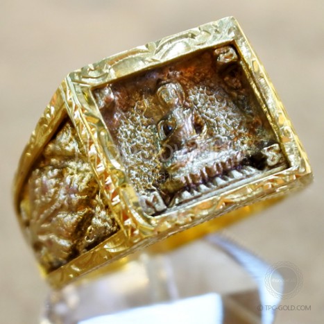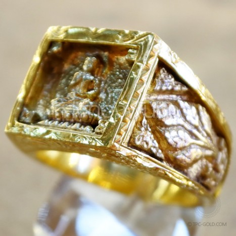 OR013 ตัวอย่างงานสั่ง: แหวนฉลุหน้าเสือ ทองคำ 90% ติดต่อสอบถาม