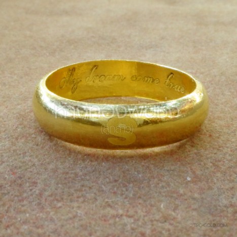 OR166 ตัวอย่างงานสั่ง: สลักอักษรบนแหวนเกลี้ยง ทอง 96.5% หนักวงละ 2 สลึง ติดต่อสอบถาม -