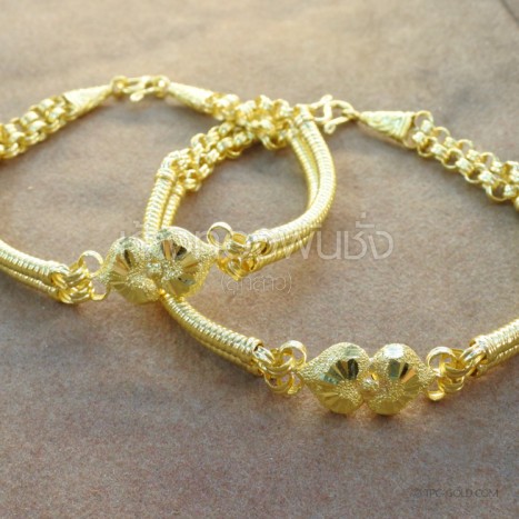 GD794 สร้อยข้อมือห้อยลูกกระพรวน(ทูโทน) ทอง 96.5% หนัก 2 สลึง ฿ 38,900 -