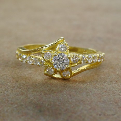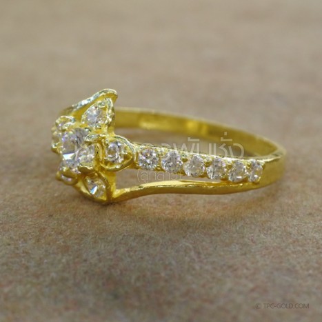 แหวนดอกไม้ติดเพชรสังเคราะห์ ทองคำ 96.5%