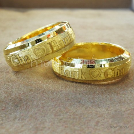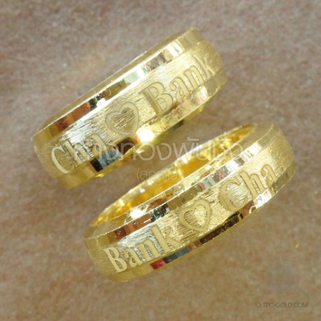 OR050 ตัวอย่างงานสั่ง : งานสลักอักษรบนแหวนคู่เกลี้ยง หนัก 1 สลึง ทองคำ 96.5% ติดต่อสอบถาม