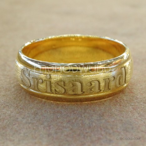 OR247 ตัวอย่างงานสั่ง: สลักอักษรบนแหวน ทรายขอบเงา ทอง 96.5% หนัก วงละ 1 สลึง ติดต่อสอบถาม -