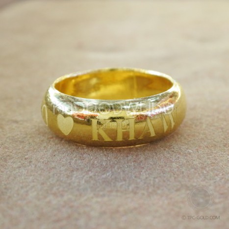 OR327 ตัวอย่างงานสั่ง: สลักอักษรบนแหวน ทรายขอบเงา ทอง 96.5% หนัก 1 สลึง ติดต่อสอบถาม -