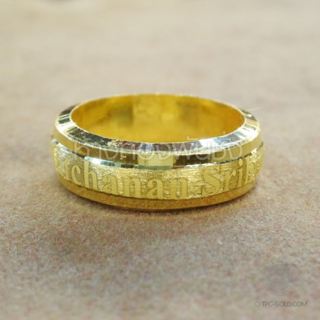 OR224 ตัวอย่างงานสั่ง: สลักอักษรบนแหวนเกลี้ยงโปร่ง ทอง 96.5% หนัก 1 และ 1/2 สลึง ติดต่อสอบถาม -
