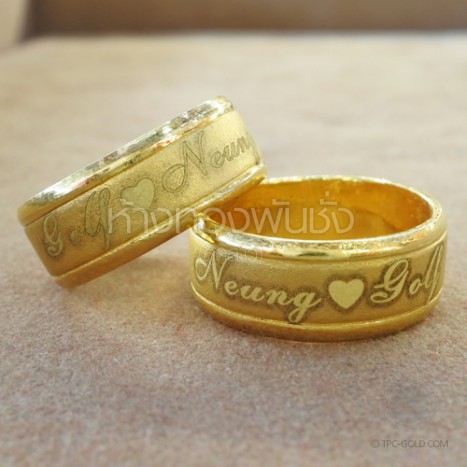 OR104 ตัวอย่างงานสั่ง: สลักอักษรบน แหวนทรายขอบเงา ทอง 96.5% หนักวงละ 1 สลึง ติดต่อสอบถาม -