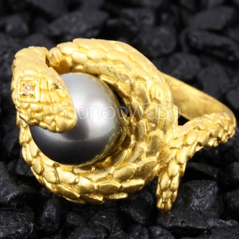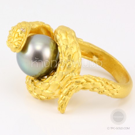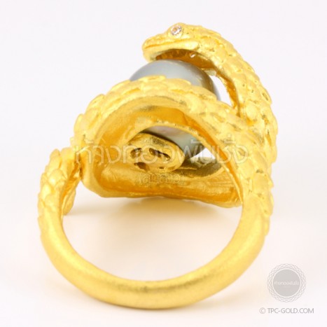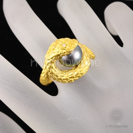 แหวนตัวงูโอบมุกดำ South Sea ทองคำ 96.5% งานดีไซน์
