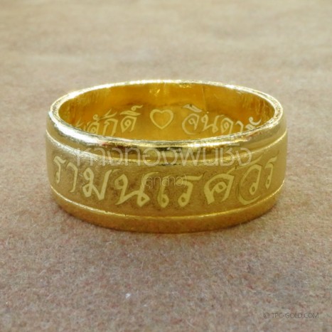 OR104 ตัวอย่างงานสั่ง: สลักอักษรบน แหวนทรายขอบเงา ทอง 96.5% หนักวงละ 1 สลึง ติดต่อสอบถาม