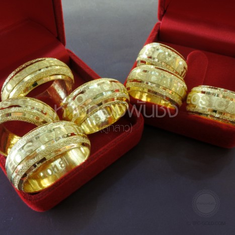 OR104 ตัวอย่างงานสั่ง: สลักอักษรบน แหวนทรายขอบเงา ทอง 96.5% หนักวงละ 1 สลึง ติดต่อสอบถาม