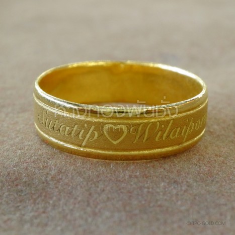 OR256 ตัวอย่างงานสั่ง: สลักอักษรแหวนพ่นทรายขอบเงา ทอง 96.5% หนัก 1 สลึง ติดต่อสอบถาม