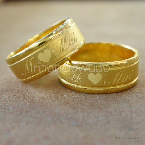 OR043 ตัวอย่างงานสั่ง : งานสลักอักษรบนแหวนคู่เกลี้ยง หนักวงละ 2 สลึง ทองคำ 96.5% ติดต่อสอบถาม -