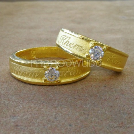 OR043 ตัวอย่างงานสั่ง : งานสลักอักษรบนแหวนคู่เกลี้ยง หนักวงละ 2 สลึง ทองคำ 96.5% ติดต่อสอบถาม