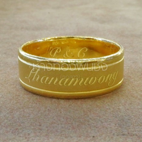 OR155 ตัวอย่างงานสั่ง: สลักอักษรบนแหวนเกลี้ยง ทอง 96.5% หนัก 1 สลึง ติดต่อสอบถาม -