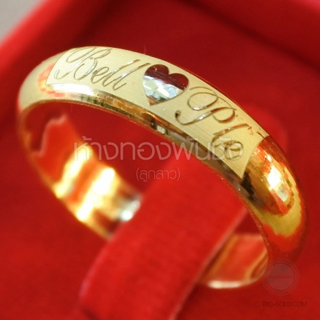 OR174 ตัวอย่างงานสั่ง: สลักอักษรบนแหวนเกลี้ยง ทอง 96.5% หนัก 1 สลึง ติดต่อสอบถาม -