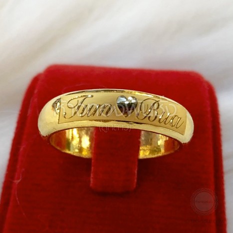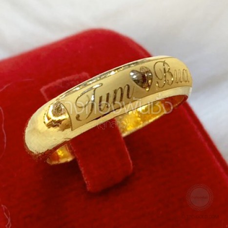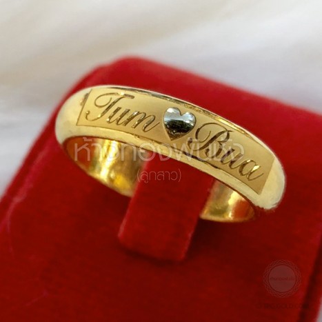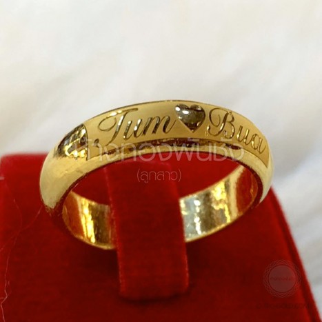 OR130 ตัวอย่างงานสั่ง: สลักอักษรบนแหวน ทรายขอบเงา ทอง 96.5% หนักวงละ 1 สลึง ติดต่อสอบถาม