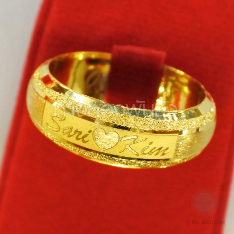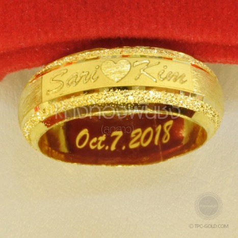 OR315 ตัวอย่างงานสั่ง: สลักอักษรแหวนพ่นทรายขอบเงา ทอง 96.5% หนัก 2 สลึง ติดต่อสอบถาม