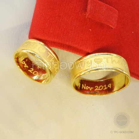 OR126 ตัวอย่างงานสั่ง: สลักอักษรบนแหวนเกลี้ยง ทอง 96.5% หนัก 1 สลึง ติดต่อสอบถาม -
