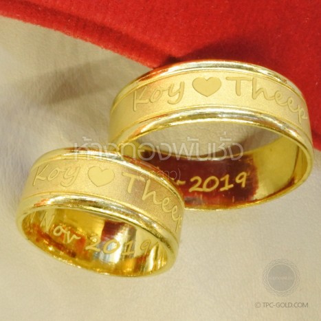 OR343 ตัวอย่างงานสั่ง: สลักอักษรแหวนพ่นทรายขอบเงา ทอง 96.5% หนัก 1 สลึง ติดต่อสอบถาม