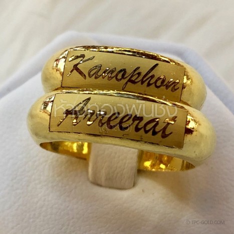 OR242 ตัวอย่างงานสั่ง: สลักอักษรบนแหวนเกลี้ยงโปร่ง ทอง 96.5% หนักครึ่งสลึง ติดต่อสอบถาม -