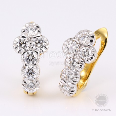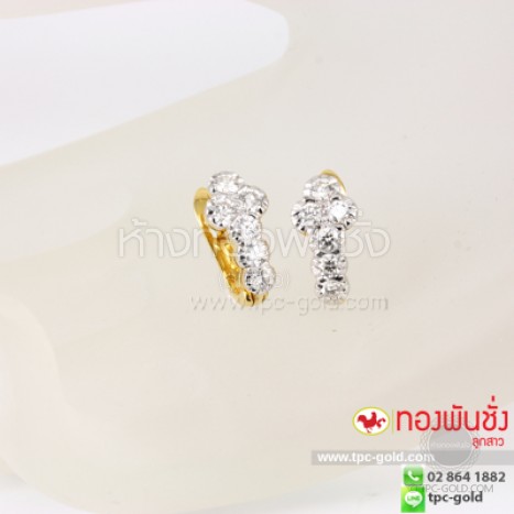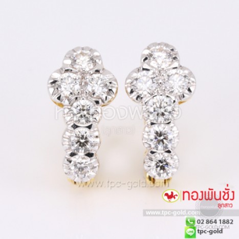 ต่างหูเพชรแท้ 0.61 กะรัต ตัวเรือนทองคำ 90%