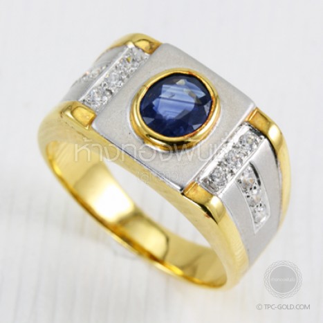 แหวนไพลินข้างเพชรรัสเซีย (ทรงผู้ชาย)