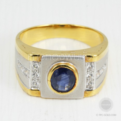 แหวนไพลินข้างเพชรรัสเซีย ทองคำ 90% ชุบสีสองกษัตริย์ (ทรงผู้ชาย)