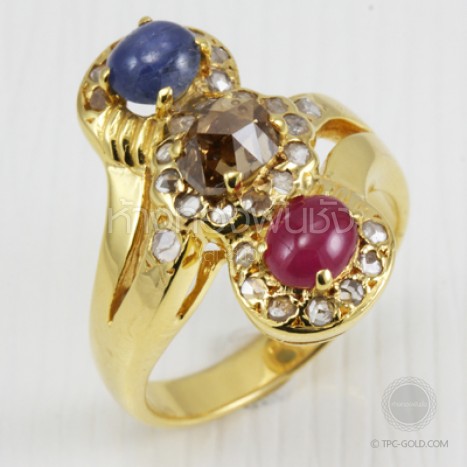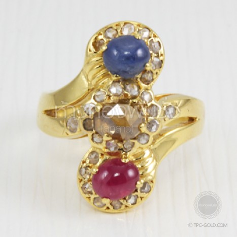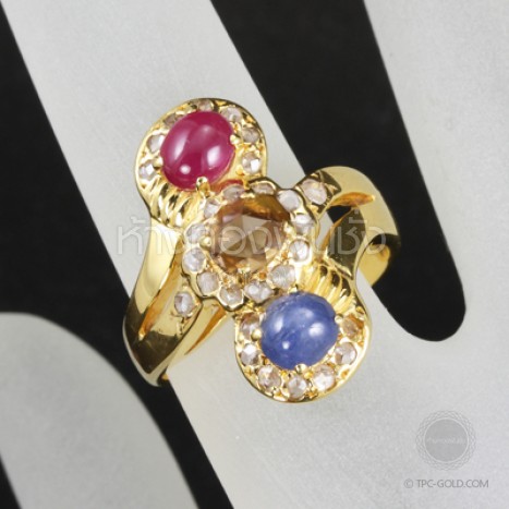 แหวนเพชรซีก,ไพลิน,ทับทิม ทรงโบราณ