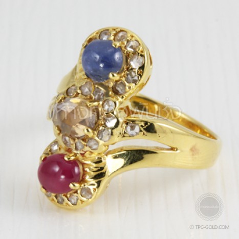 แหวนเพชรซีก,ไพลิน,ทับทิม ทรงเรียงไขว้แบบโบราณ