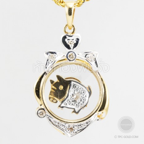 จี้ราษีปีกุน (หมู) ทองคำ 18k ติดเพชรแท้