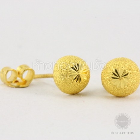ต่างหูแป้นลายฉีดทราย ทอง 96.5% หนักครึ่งสลึง