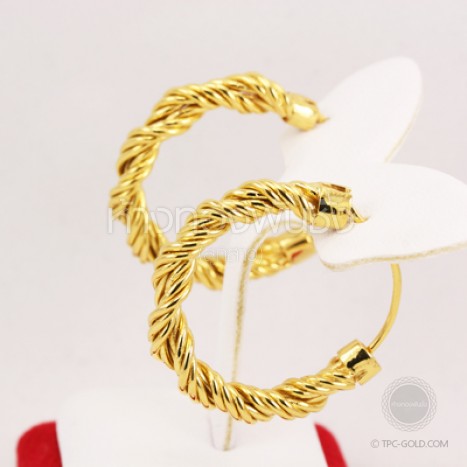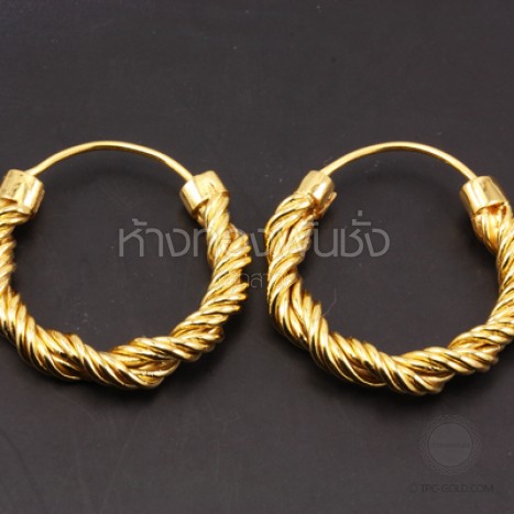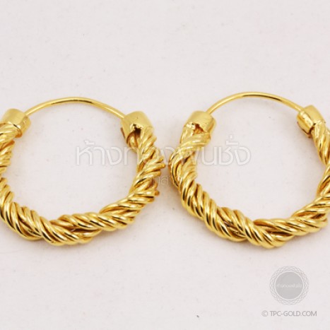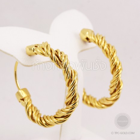 ต่างหูห่วงลายเกลียวเชือก ทองคำ 90%