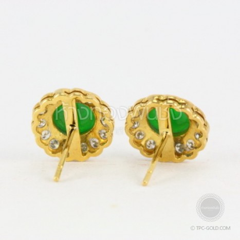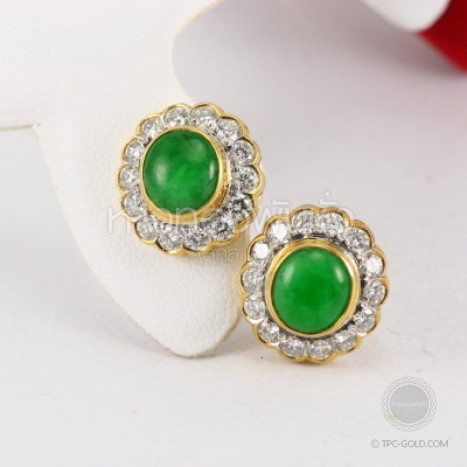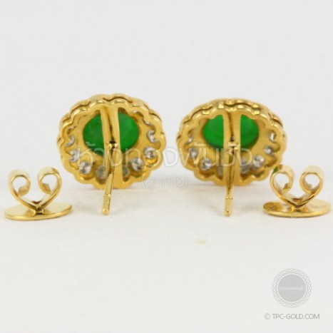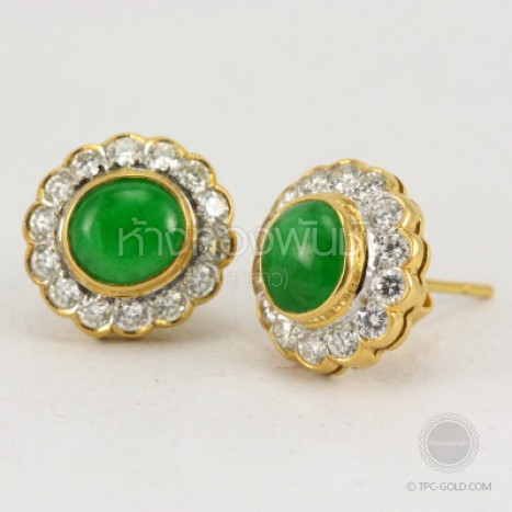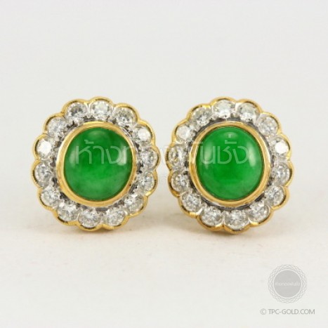 ต่างหูหยกสีเขียวจักรพรรดิล้อมเพชร