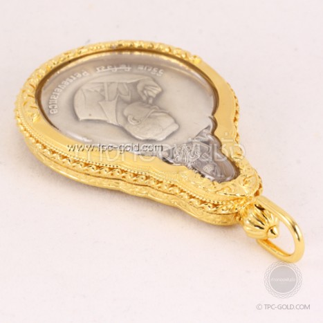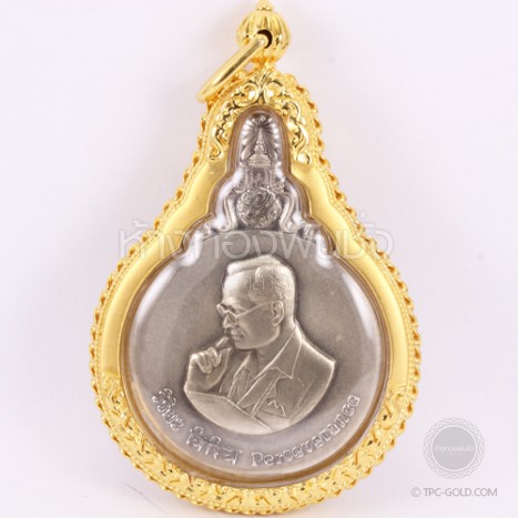 เหรียญในหลวงรุ่นพระมหาชนก เนื้อเงิน เลี่ยมทองคำ 90%