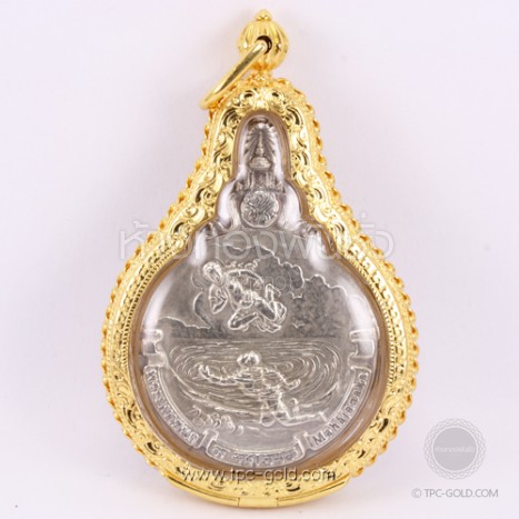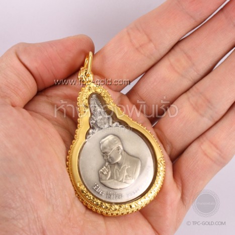 เหรียญในหลวง ร.9 รุ่นพระมหาชนกเนื้อเงิน เลี่ยมทองคำ 90%