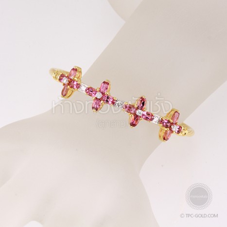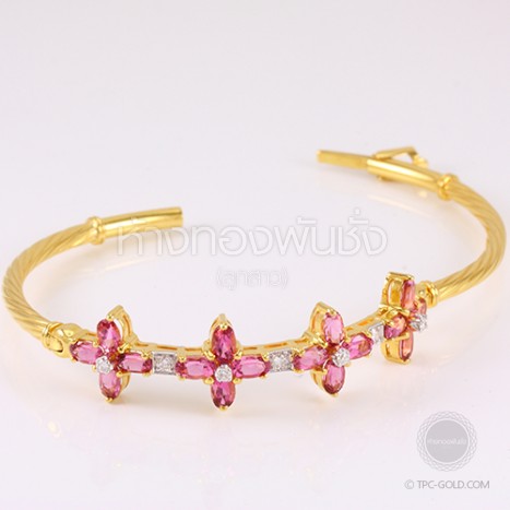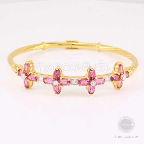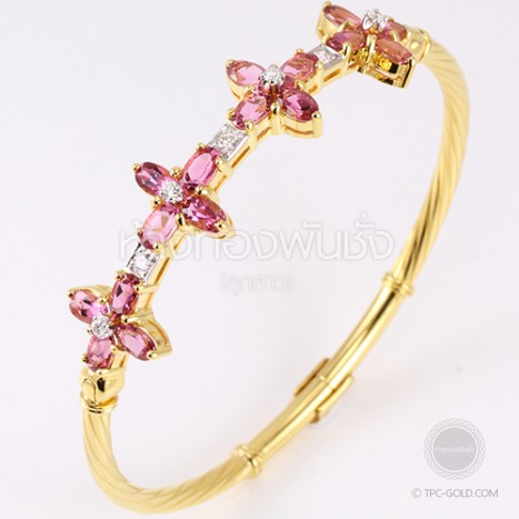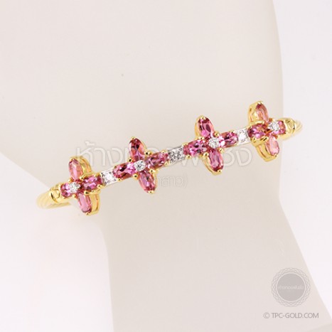 กำไลเพชรแท้และพลอยรูบิไลท์ (Rubellite)