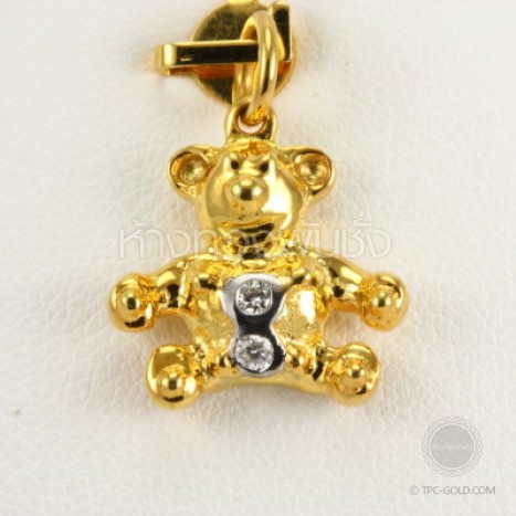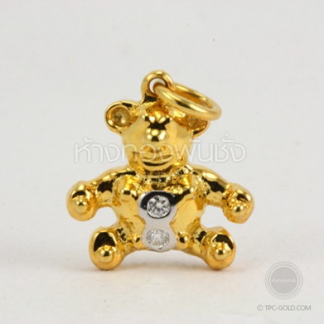 จี้หมีฝังเพชรแท้ ตัวเรือนทองคำแท้ 90%