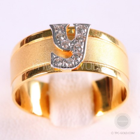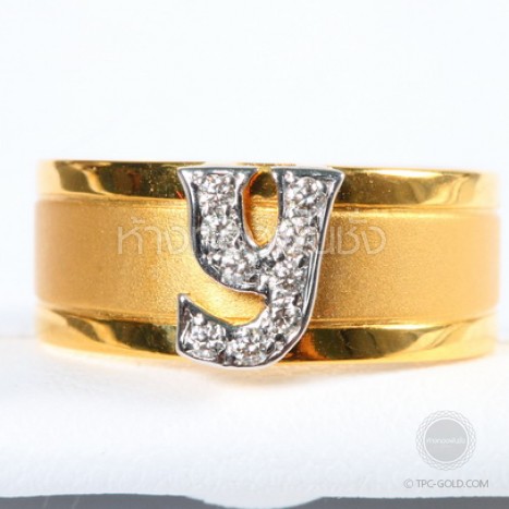 แหวนเพชรรูปตัว Y ทองคำ 90% พ่นทราย และขัดริมเงา